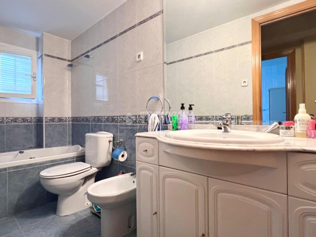 - Dos cuartos de baño con ventana, uno de ellos con bañera y otro con plato de ducha.
